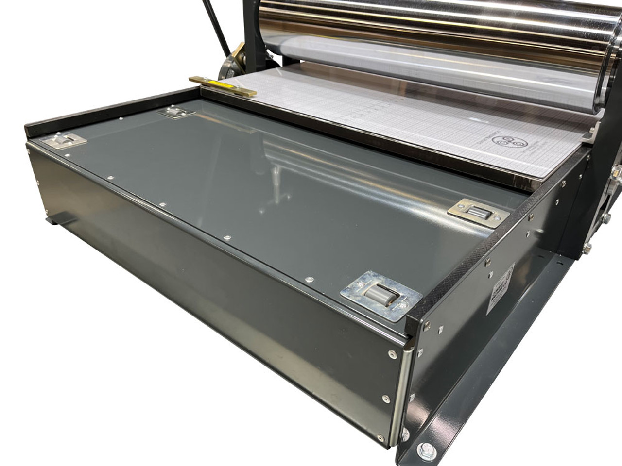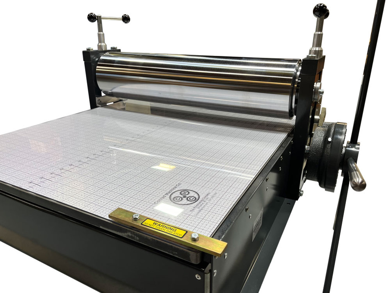 I chose this press specifically for its capacity and build quality. With an extended 60 inch steel bed and a jumbo 10 inch top drum, it delivers smooth, even pressure across the entire bed. This setup can handle everything from delicate chine collé to demanding viscosity workflows.